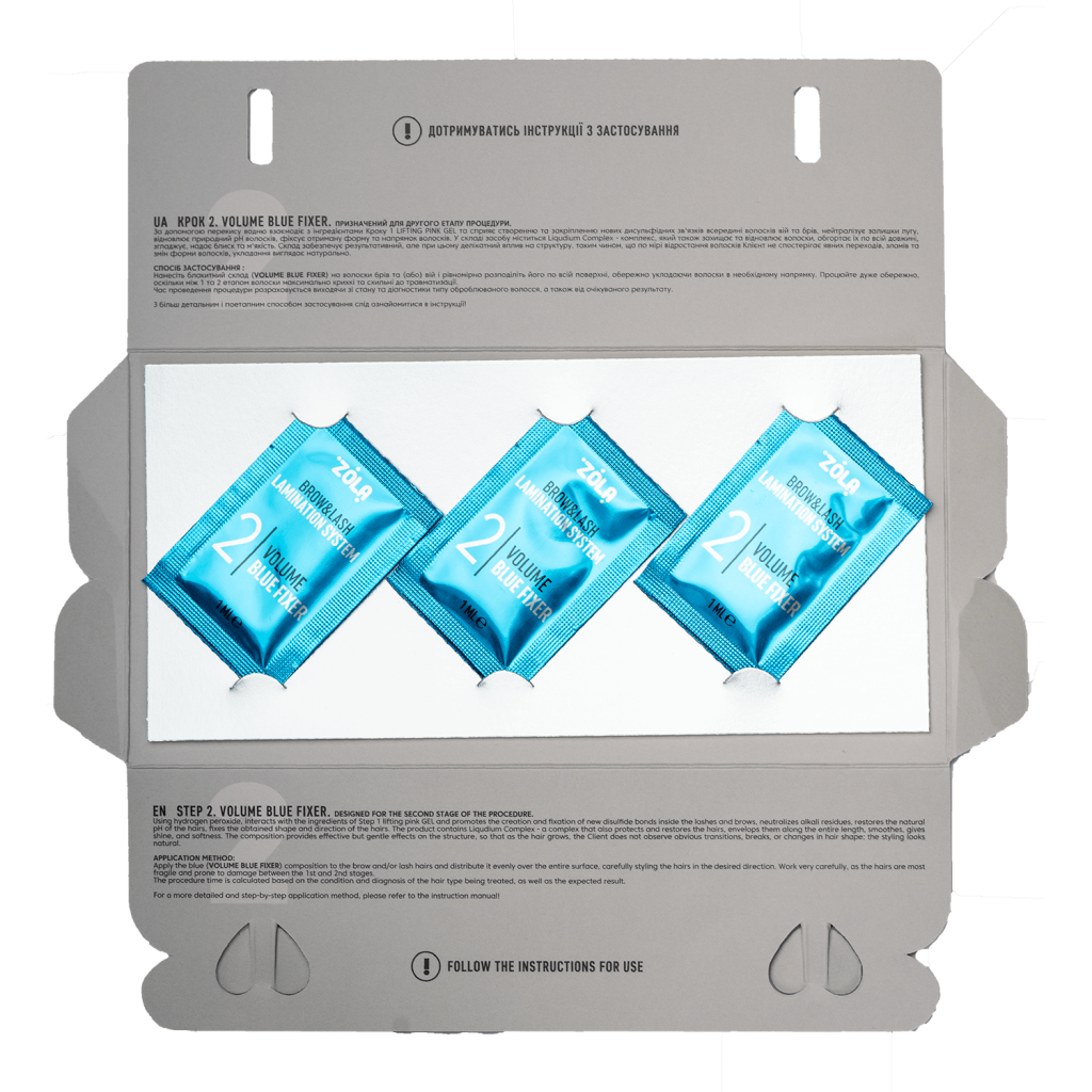 ZOLA Color Lab 02 Volume Blue zestaw saszetek 3 x 1ml to kluczowy etap profesjonalnej laminacji brwi i rzęs, który odpowiada za nadanie włoskom objętości i utrwalenie efektu. Aby osiągnąć pełnię rezultatów, połącz go z ZOLA Color Lab 01 Lifting Pink Gel zestaw saszetek 3 x 1ml, który unosi włoski i przygotowuje je do dalszych etapów, oraz ZOLA Color Lab 03 Hyaluronic Green zestaw saszetek 3 x 1ml, zapewniającym nawilżenie i regenerację po zabiegu. Razem tworzą kompletny system gwarantujący długotrwały efekt pięknych, zdrowych brwi i rzęs.