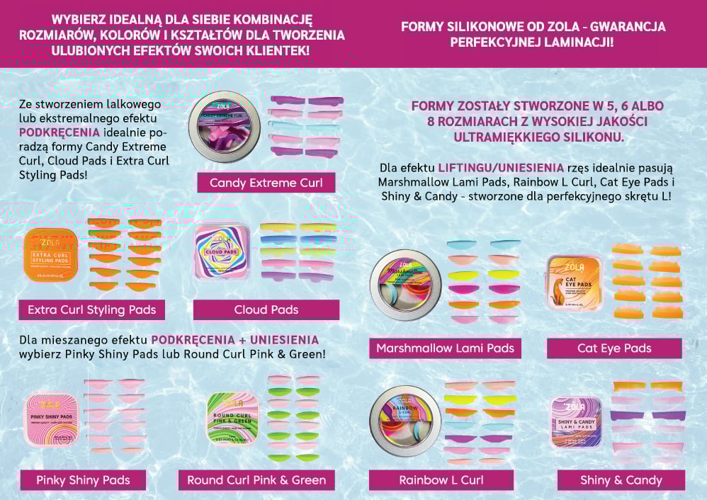 ZOLA Formy silikonowe Pinky shiny pads to oparty na nowoczesnych rozwiązaniach narzędzie przeznaczone do laminacji brwi, które pozwala na uzyskanie o unikalnych właściwościach blasku. Cechują się silikonową konstrukcją, która doskonale przylega do skóry, zapewniając precyzyjnie wykonany modelowanie brwi. Dostępne w różnych rozmiarach, te formy oferują odpowiedni dopasowanie dla każdego kształtu brwi, gwarantując wyrazistość i blask.