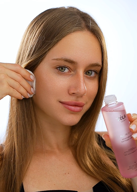 Nasącz wacik preparatem i delikatnie oczyść skórę twarzy. W razie potrzeby powtórz czynność.